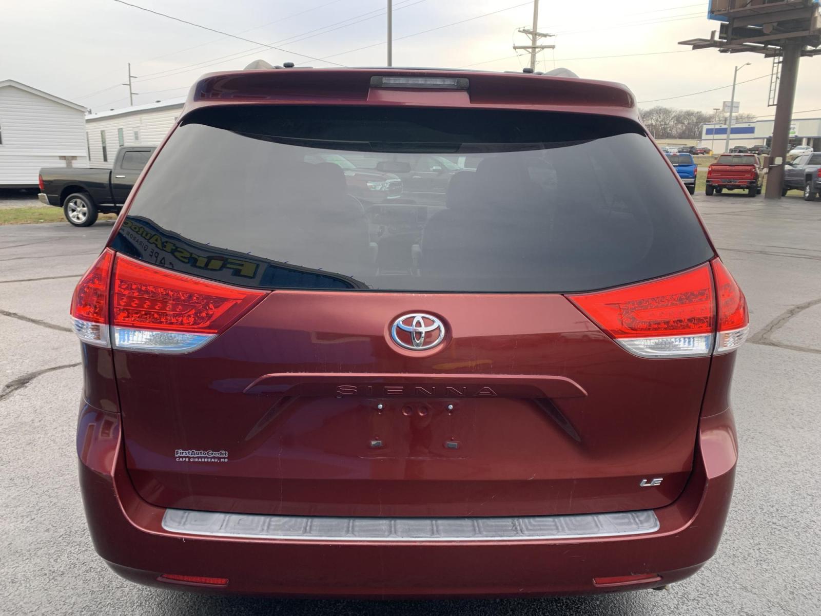2011 Toyota Sienna LE Local 1-Owner 199xxx miles Front Wheel Drive 3.5L V6 Automatic 3rd Row Power Driver Seat Backup Camera Cruise Power Windows/Locks/Mirrors We have financing available and we accept trades! Fill out a credit application on our website or come by today! If you have any questions, give us a call at (573) 235-5000 or visit our website at firstautocredit.com.